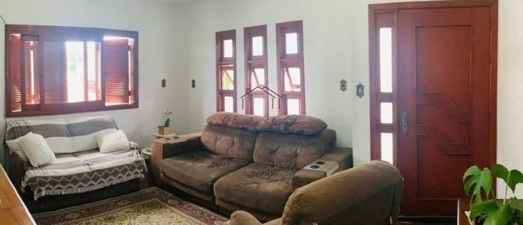 Possui 3 dormitórios (1 suíte com hidromassagem), 2 banheiros + 1 lavabo, salas de estar e jantar integradas, cozinha espaçosa, churrasqueira, lavanderia, depósito e varanda. Conta ainda com garagem coberta para até 3 veículos, terreno cercado, aberturas em madeira e aquecimento a gás.